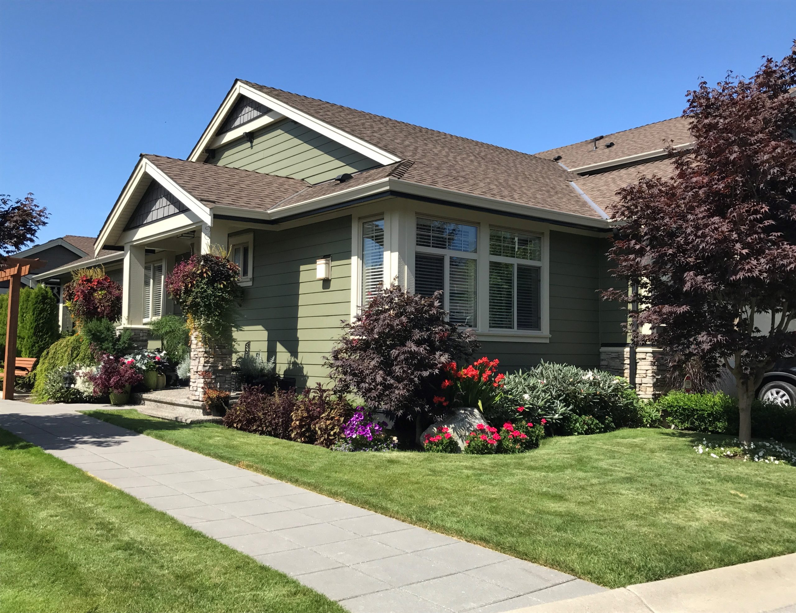 Para Space was among the recipients for our landscape maintenance work at Greens at the Douglas located in rural South Surrey. This property offers a tranquil setting with multiple seating areas and a putting green! This lush, spacious landscape features expansive turfed areas and a wide variety of plant material, providing a touch of both formal and informal elements. Relaxing at home is made easy when you have this well manicured landscape to enjoy!