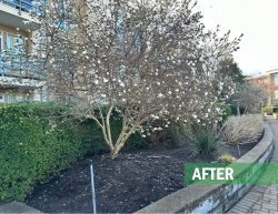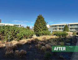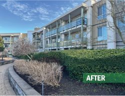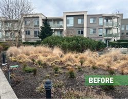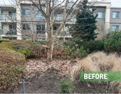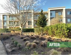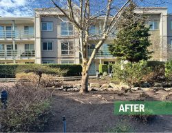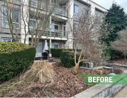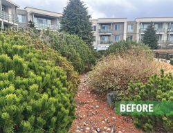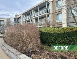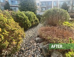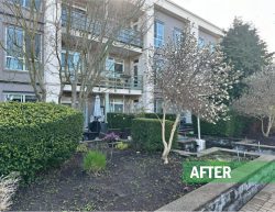 This large residential complex in Surrey features a mature landscape and a distinctive 2nd floor courtyard with a dry-river stream as its centerpiece. Over time, the plantings had become overgrown, obscuring the original design and reducing curb appeal. Our team delivered expert restorative pruning across the site, carefully reshaping and rejuvenating the existing plant material. The result was a cleaner, more inviting landscape that immediately caught the attention of residents, underscoring the value of professional maintenance in preserving both beauty and function for any landscape.